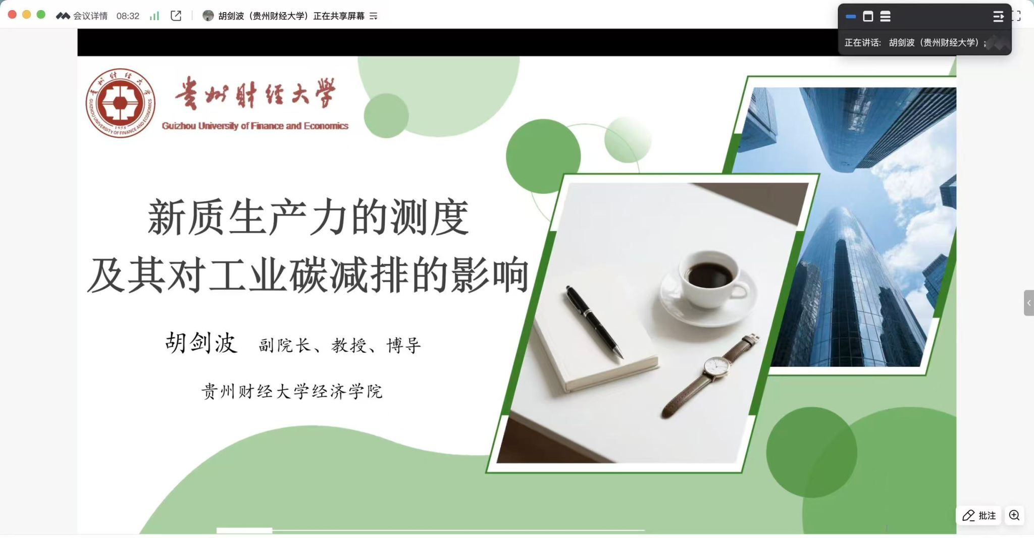 2025年10月13日,我院邀请贵州财经大学经济学院副院长胡剑波教授为师生做了题为“新质生产力的测度及其对工业碳减排的影响”的线上学术报告会,报告由888集团welcome院长方国昌教授主持,888集团welcome、经济学院、财政与税务学院教师、研究生及本科生参与了此次讲座。