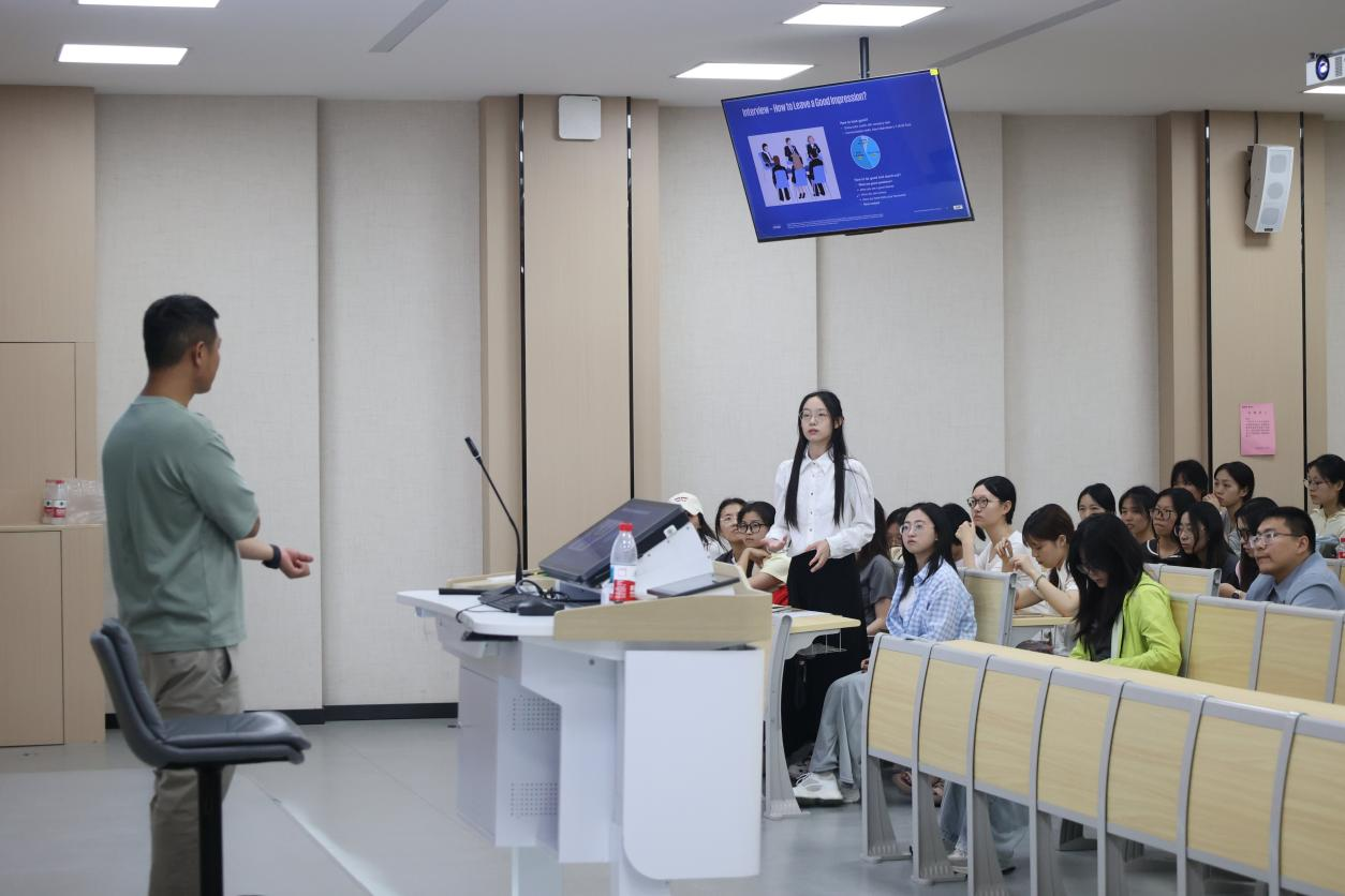 接着,他从雇主视角揭秘了财务金融行业外资企业的人才选拔全流程,针对简历优化、游戏化测评、无领导小组讨论、经理与合伙人面试等环节,逐一剖析常见考察形式与应对策略。他强调,毕马威高度重视“专业素养、逻辑思维、团队协作与持续学习”四大核心胜任力,鼓励同学们尽早规划、积极实践,不断提升综合竞争力。