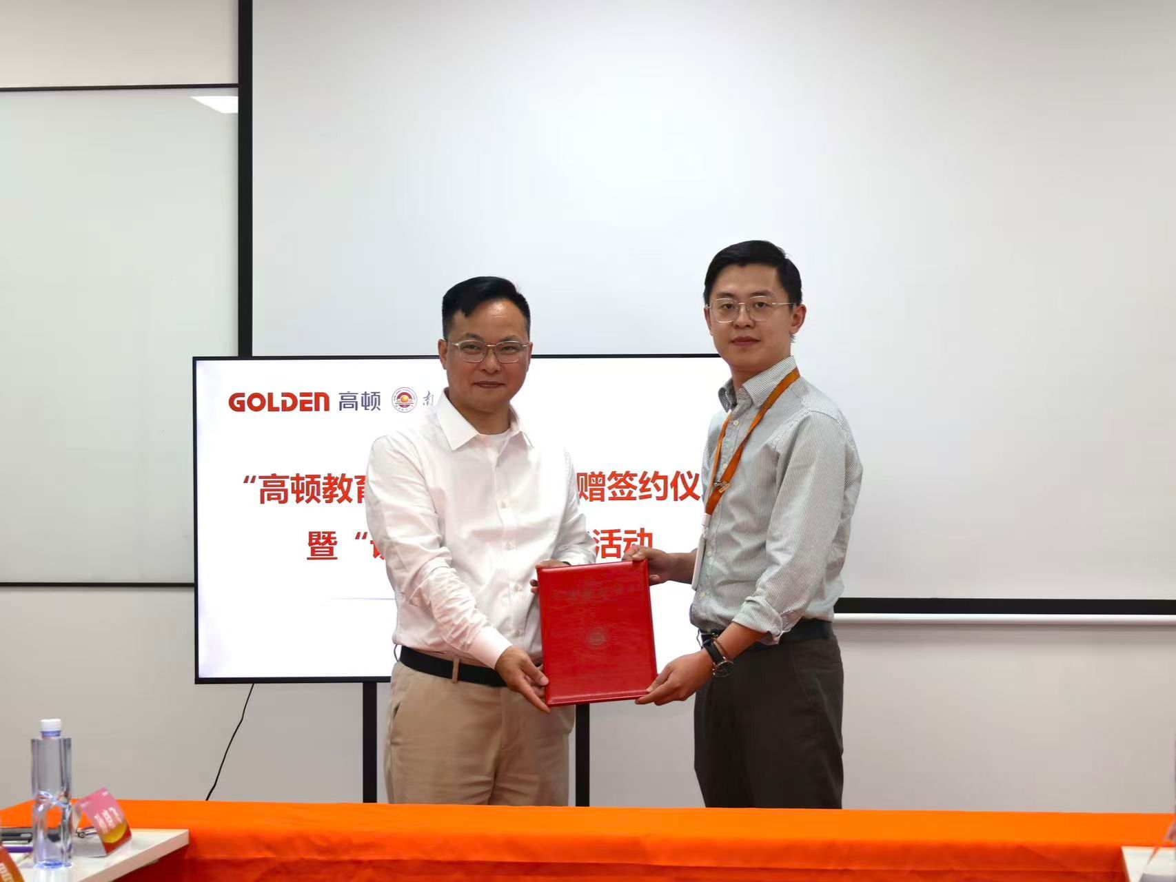 随后,双方就人才培养、产教融合、科学研究等方面展开进一步交流。交流结束后,丁晓靖总经理与方国昌院长、陆明峰处长共同签署捐赠协议。张炳副校长代表学校向高顿教育集团颁发捐赠证书。