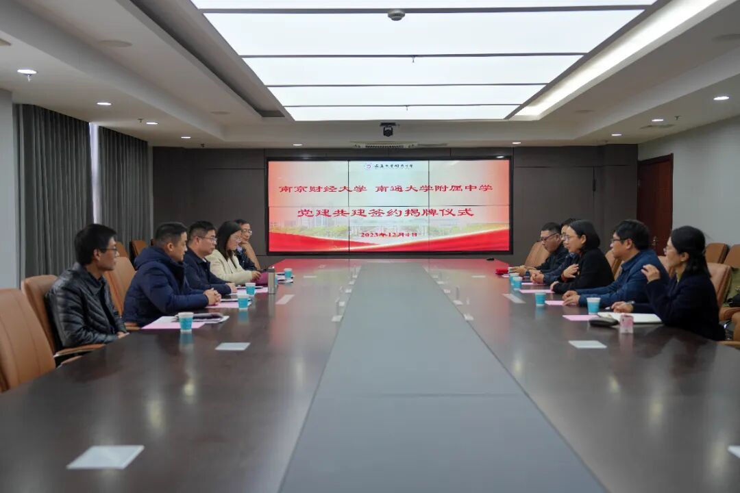中午,我院与南通大学附属中学党委在南通大学附属中学博约楼319会议室举行党建共建签约仪式。副院长(主持工作)方国昌一行5人,南通大学附属中学校长、党委副书记范永梅、党委副书记、纪委书记沈健、党委委员、副校长,第二党支部第一书记朱振华、党政办公室主任沈涛、团委书记韩慧贤、学生处副主任、第二党支部书记汪淳朴参加了此次签约仪式。方国昌副院长(主持工作)对南通大学附属中学建校10年来取得的成绩表示祝贺,并介绍了我校发展近况以及学院的办学历史、师资队伍、学科建设和人才培养等情况,希望通过合作,拓宽思路,扩大服务面,发挥党建引领作用,探索“党建+”新路径,实现高校和中学的联通,促进双方交流和资源共享,达到共同提升。接着,南通大学附属中学第二党支部书记汪淳朴和我院教工第二党支部成员、院党委副书记孙晓飞分别介绍了各支部的基本情况。双方就组织联建、党员互动、活动互联、资源共享等方面展开讨论并达成共识。最后,双方代表签订党建共建协议并揭牌。今后,双方将以此次共建为契机,本着“优势互补、双赢发展”的原则,扎实推进主题教育,努力把工作做实,做出成效,培养更多优秀学生,促进双方更好发展!